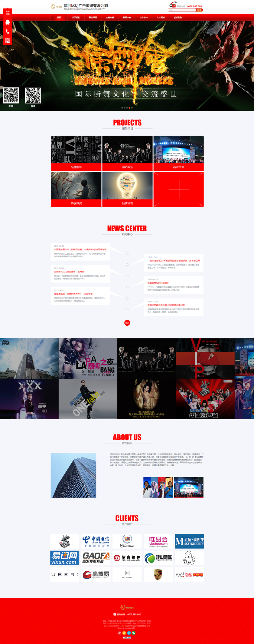 Project Description 深圳市比达广告传媒有限公司是一家多元型广告传媒公司,业务涉及品牌服务、商业策划、演艺娱乐、影视投资、广告代理等多个专业领域,主要服务的客户遍及两岸三地,积累了丰富的专业经验及广告资源。 Official website address 秦皇岛http://www.pdhouse.com I want to share